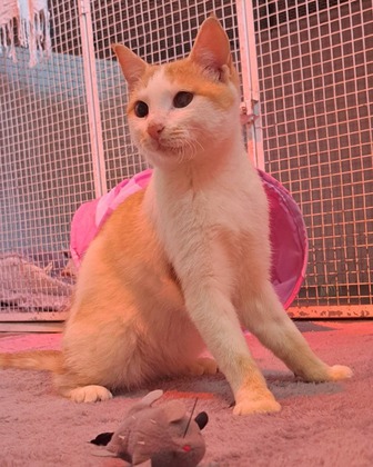 Ich bin ein ganz lieber, junger Kater und liebe es mit meinen Artgenossen zu spielen und von den Menschen verwöhnt zu werden. Ich freue mich über jeden Besuch, klettere den Menschen gerne auf den Schoss, jage meine Katzenfreunde durch den Rascheltunnel und versuche mich im Fliegenjagen. Auch Leckerlis picken ist ein absolutes Hobby von mir.