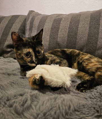 Ich bin eine sehr aktive junge Katze und spiele für mein Leben gerne. Manchmal renne ich so schnell, dass die Menschen mich kaum mehr sehen – ich flitze an ihnen vorbei und sie müssen immer gut aufpassen, wenn sie die Türe öffnen. Ich verstehe mich sehr gut mit meinen Katzenfreunden und kann es auch mit den wilden, jungen Katern aufnehmen.